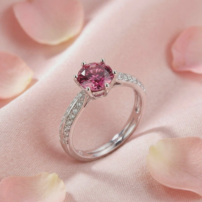 Mined tourmalines are frequently clouded by inclusions that disrupt light return and dull the stone's natural fire. We engineered this ring to replicate the top 1% of October birthstones, featuring a Simulated Pink Tourmaline with deep raspberry saturation and flawless VVS-grade clarity that nature rarely achieves consistently.