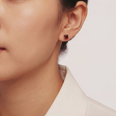 Nature is inconsistent, but engineering is precise. Mined garnets often suffer from internal inclusions that cloud their brilliance. These January birthstone earrings feature Simulated Garnet, color-calibrated to achieve the coveted "Pigeon Blood" red benchmark—a deep, saturated hue usually reserved for museum-grade heirlooms.