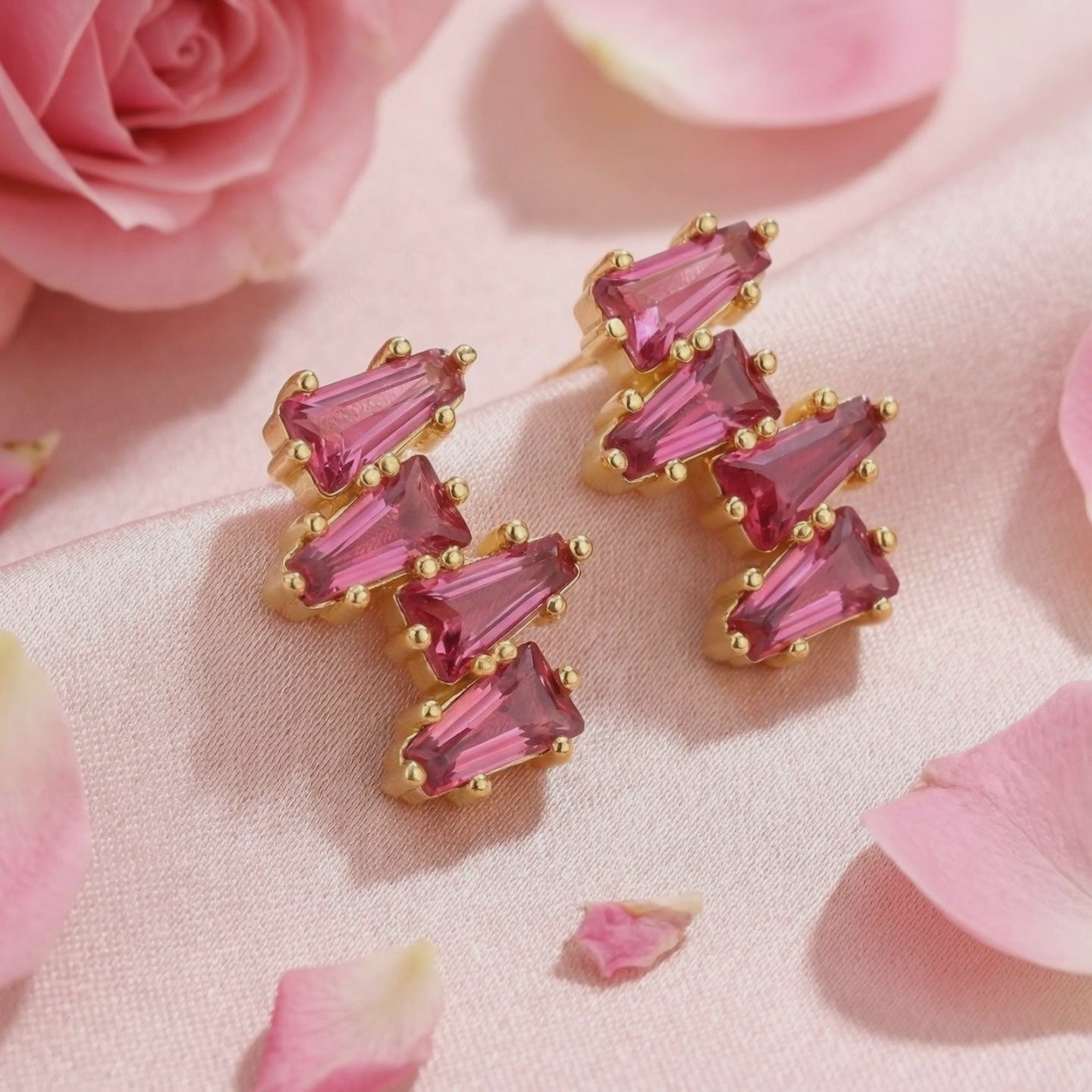Nature rarely produces Pink Tourmaline with this level of saturation and flawless internal structure. These earrings feature color-calibrated simulated stones engineered to match the coveted warm raspberry brilliance benchmark. Each stone is precision-cut to maximize visual physics and light return, ensuring a deep glow that resists the dull, cloudy appearance often found in mined alternatives.