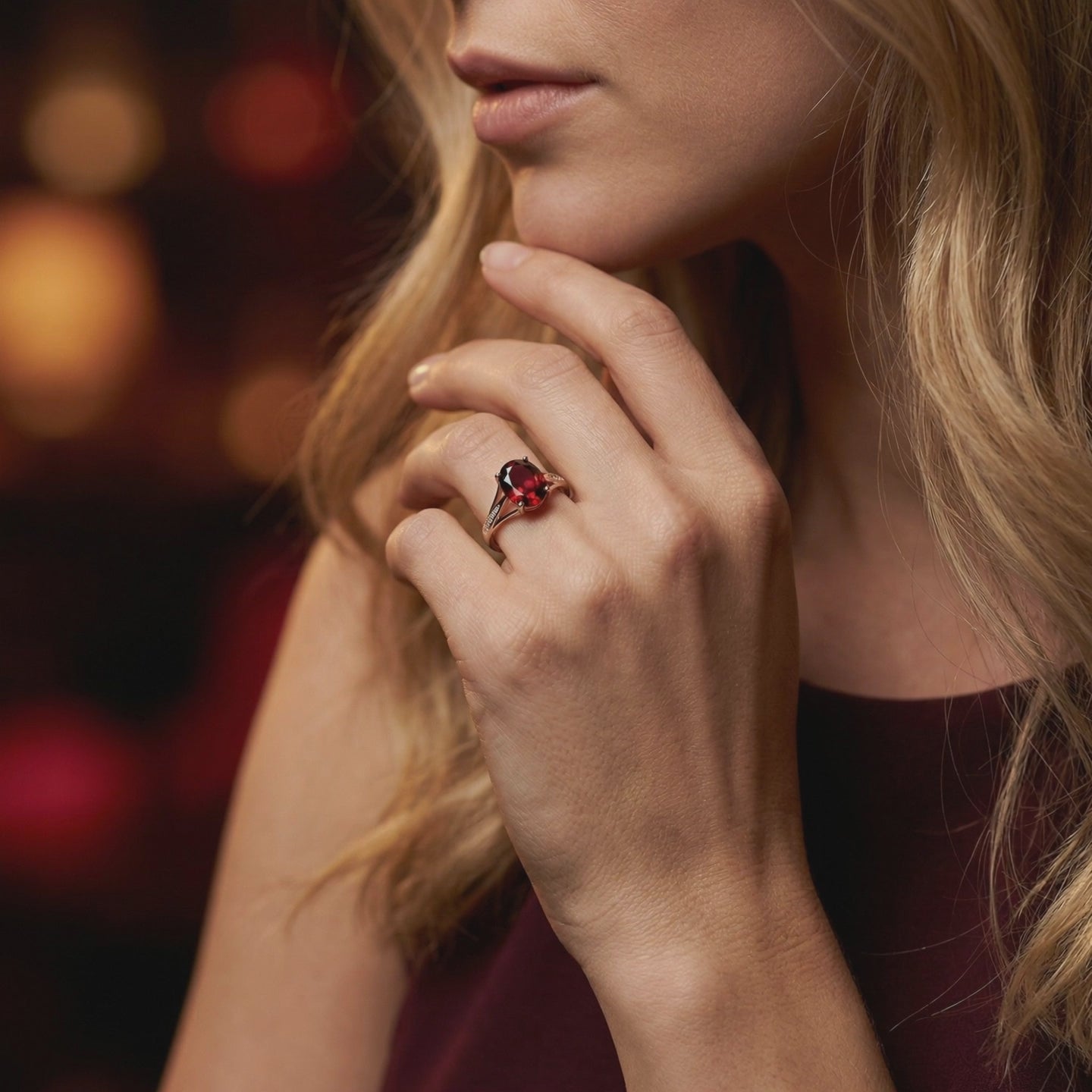 Because this is a natural gemstone, its deep burgundy hue is dynamic — appearing as a rich, dark crimson in low light and revealing vibrant red fire under direct sunlight.