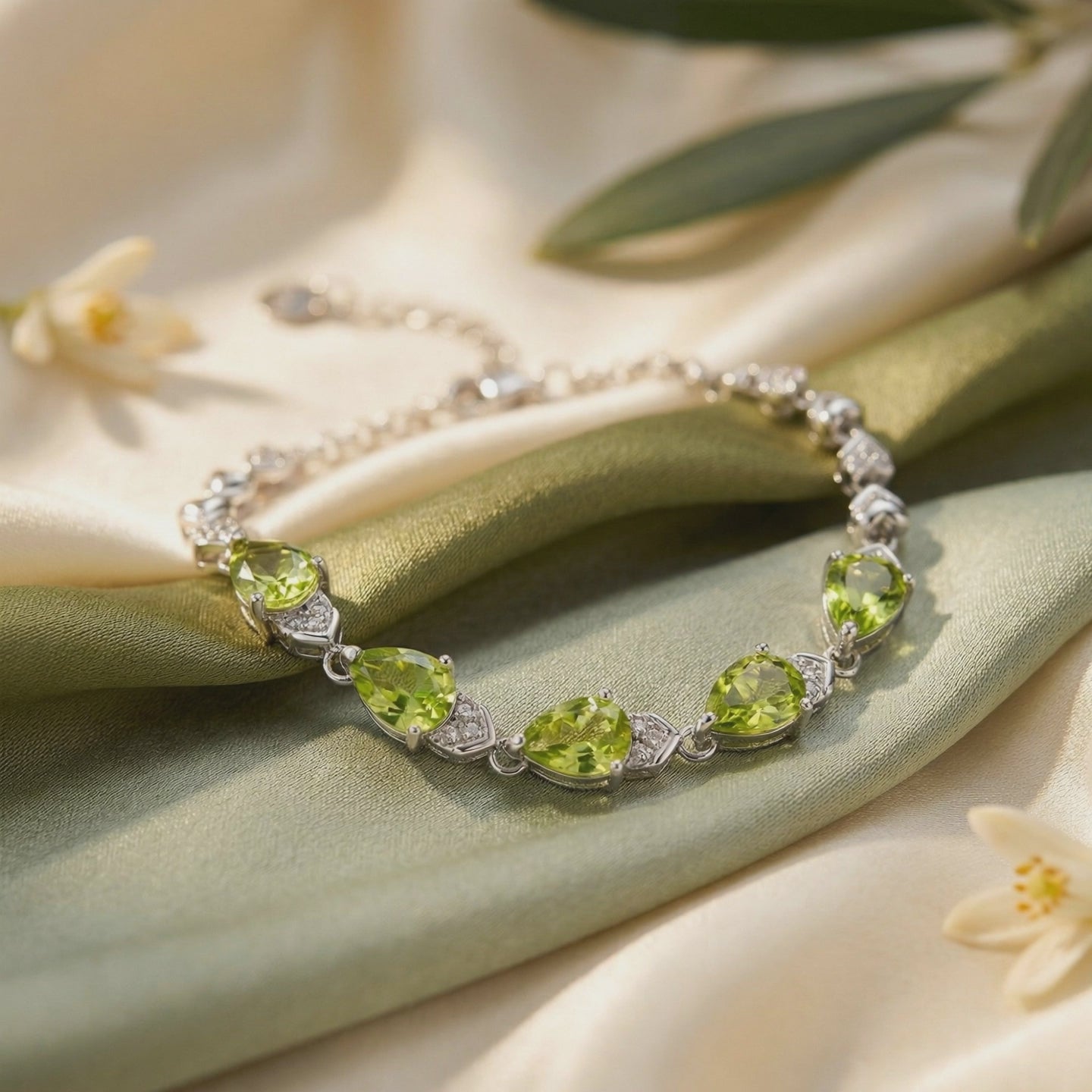 Five vibrant, pear-cut Natural Peridot gemstones dance along a delicate chain, creating a rhythm of light and vitality. Known as the "Evening Emerald," these certified natural stones capture the fresh energy of spring, offering a luminous glow that refuses to fade even when the sun goes down.