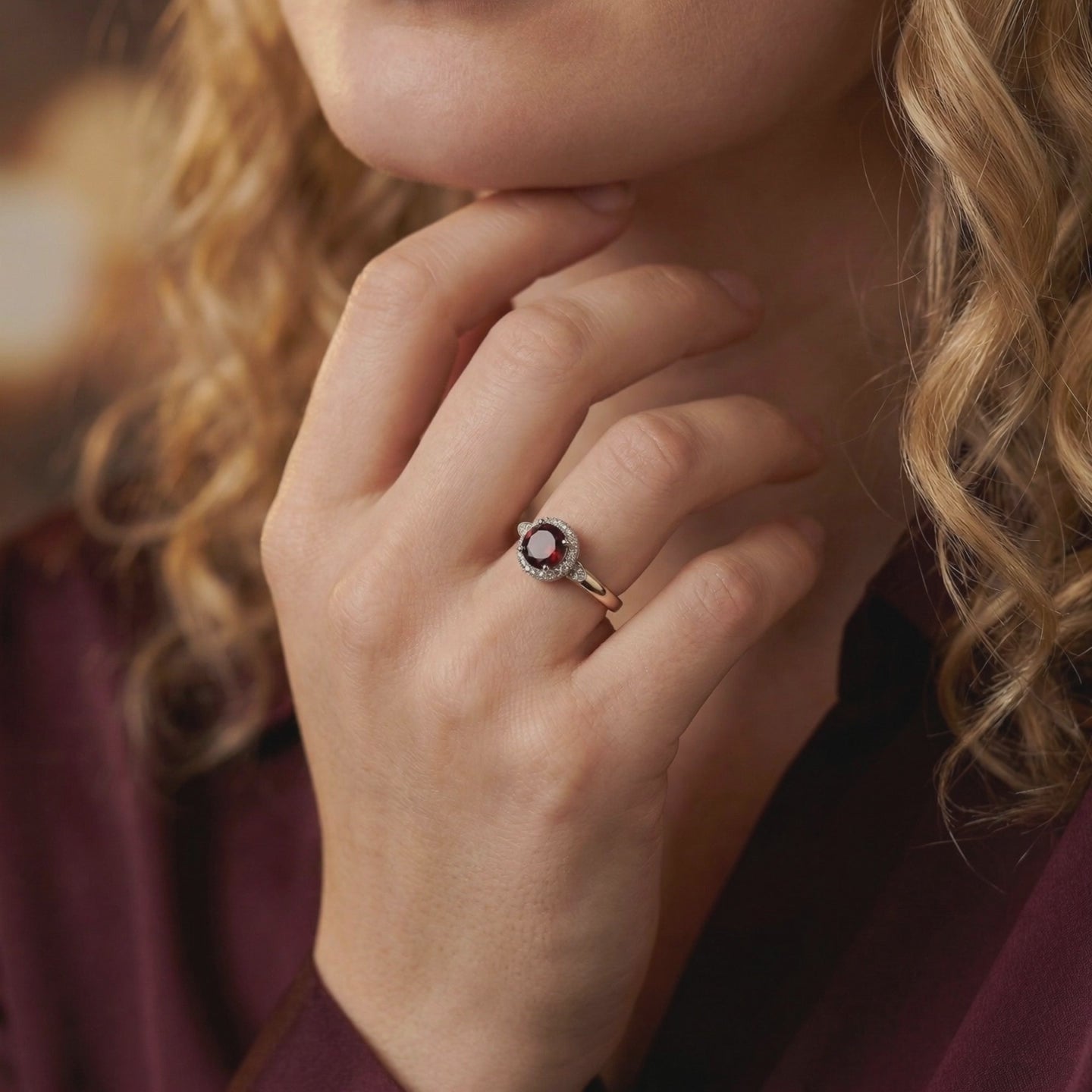 The Alethea Halo Garnet Ring