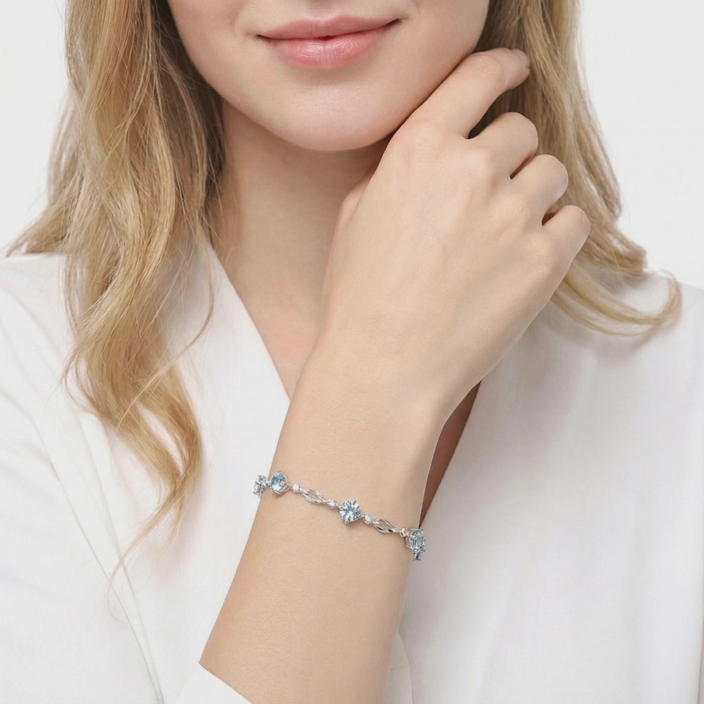 This station bracelet features a low-profile geometric frame designed to sit flat against the wrist. It won't snag on knitwear or interfere with daily tasks, making it the perfect choice for the modern woman who demands both performance and aesthetics. The base is Solid 925 Sterling Silver, finished with a heavy layer of Rhodium to resist tarnish, hand sanitizer, and daily wear.