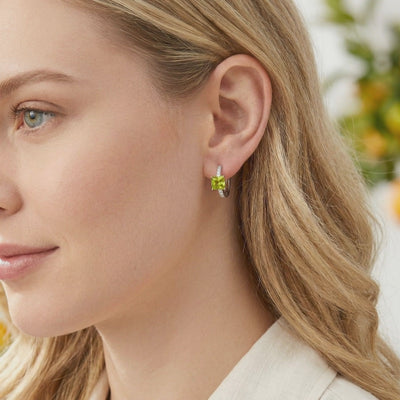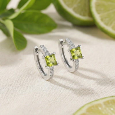 Mined peridot often suffers from inconsistent color and internal inclusions that dull its natural fire. These earrings feature Simulated Peridot, engineered to achieve the ideal vibrant yellow-green brilliance that nature rarely delivers. Each stone is precision-cut into a sharp square profile to maximize light return and display flawless saturation.