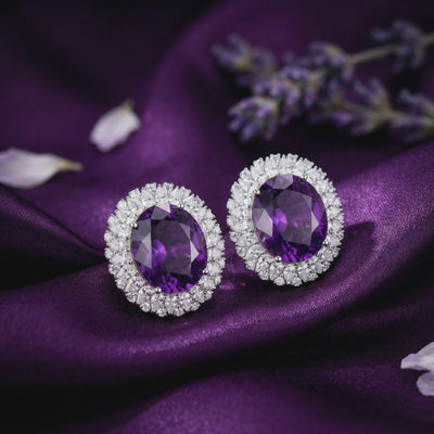 Command the room with the breathtaking presence of these drop earrings, featuring two massive 7-carat Natural Amethysts. Boasting a deep, saturated violet hue that rivals the finest Siberian gems, each stone is precision-faceted in a classic Oval Cut to eliminate windowing and maximize light return. The sheer scale of the 14-carat total weight creates a mesmerizing window into geological wonder, offering a level of brilliance rarely seen in standard jewelry.