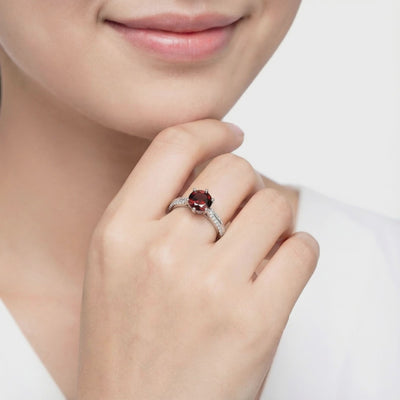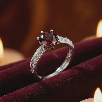 For the January born, we rejected the inconsistency of mined stones. We utilized A5 Grade material to match the ideal Pigeon Blood saturation with perfect Deep Red saturation.