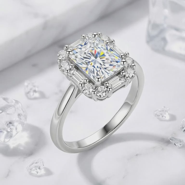 The Elara Radiant Halo Ring - S925 Sterling Silver
