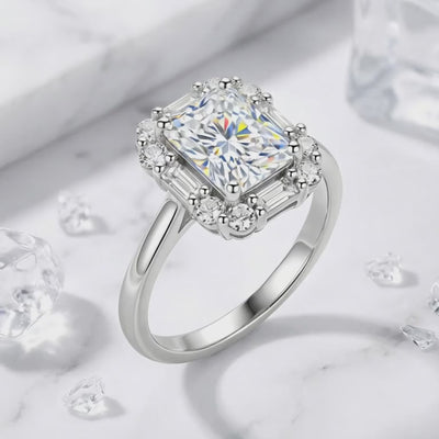 - Optical Profile: Precision Octagon Cut with brilliant halo and baguette accents.