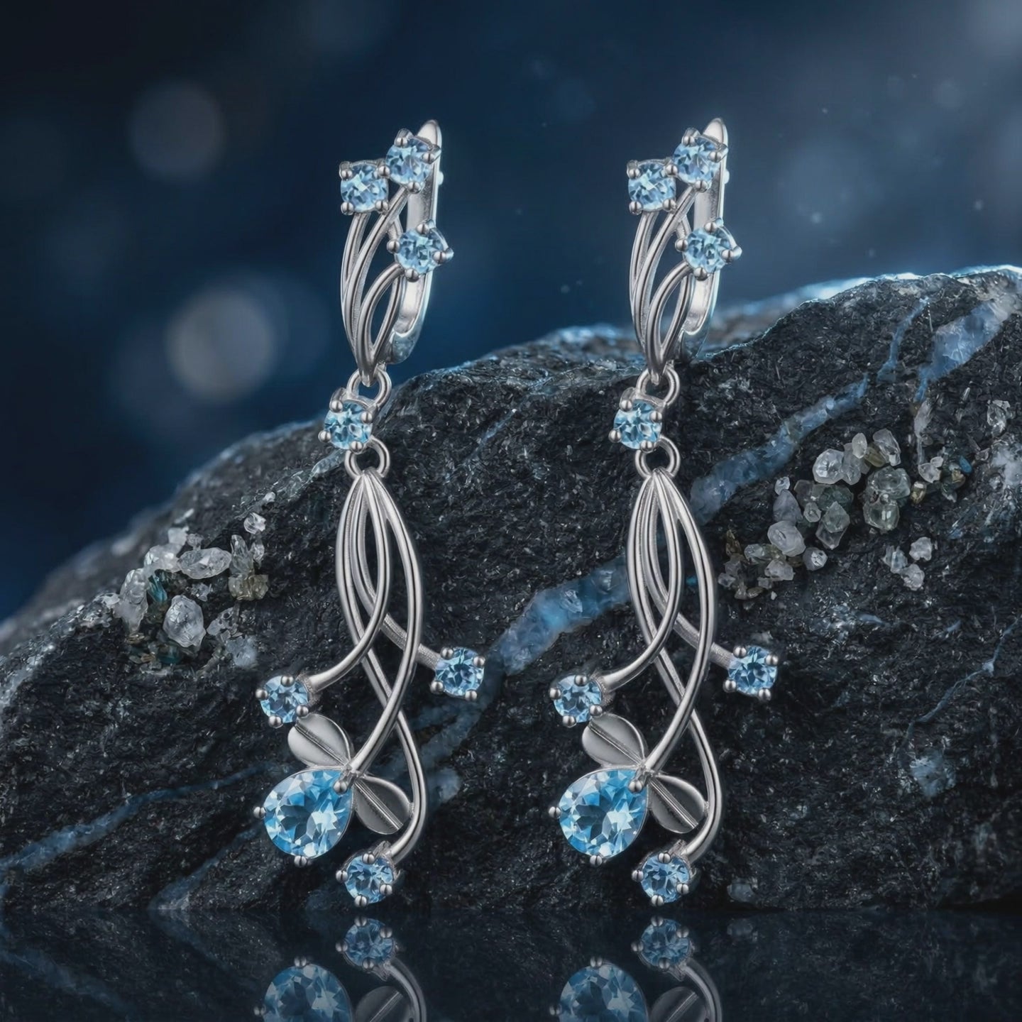 You do not need an occasion to wear extraordinary gemstones; reward your own journey with a masterpiece that demands attention. These spectacular drop earrings feature sixteen precision-cut natural blue topaz stones, anchored by a substantial 5x7mm pear-cut centerpiece and cascading with fourteen expertly faceted 3mm round stones. Because natural topaz possesses exceptional, eye-clean transparency, this precision arrangement allows light to travel deeply into the stones, reflecting a vivid, electric blue hue. Achieved through safe, permanent, industry-standard color enhancement, this vibrant oceanic saturation will remain brilliant for a lifetime.
