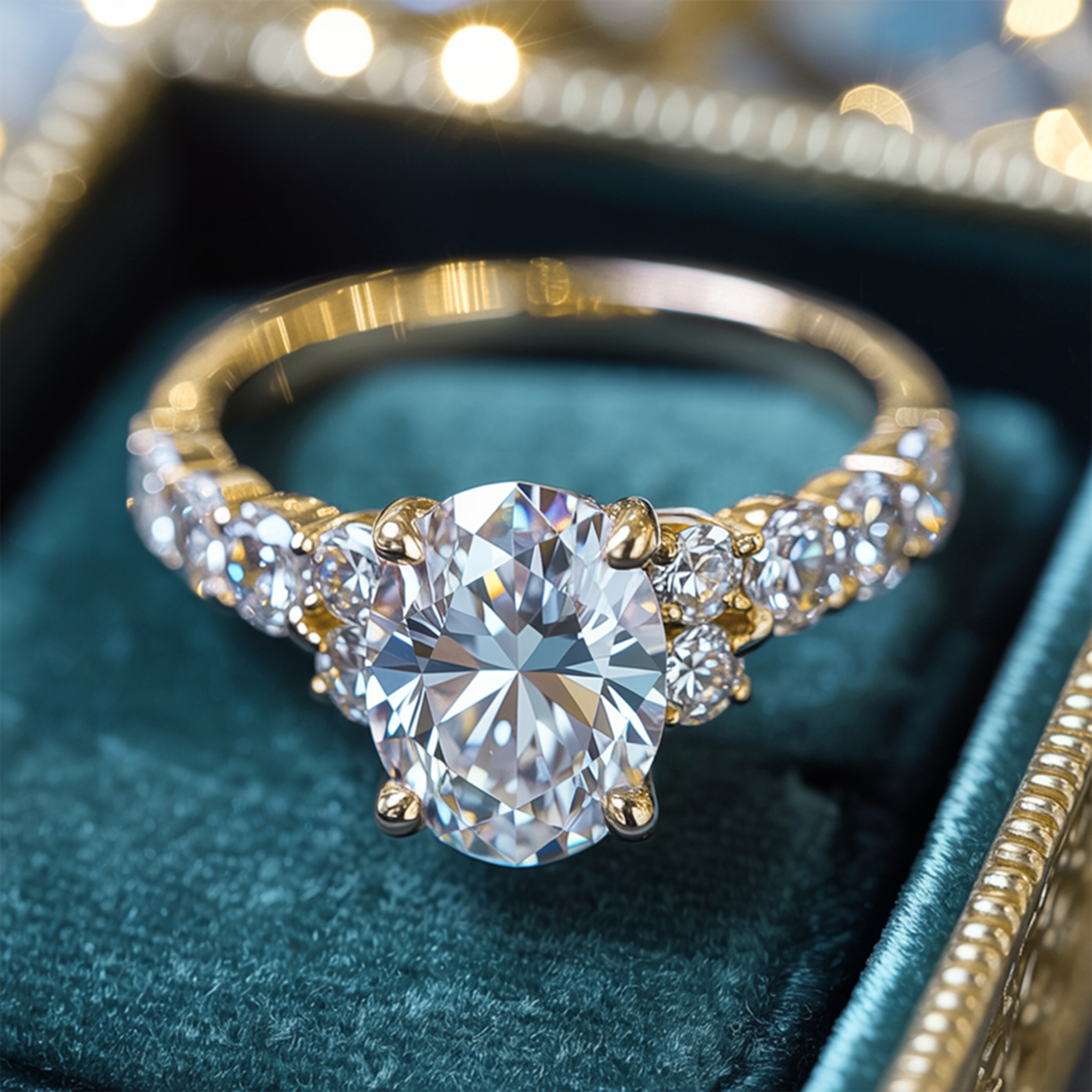 - Setting Type: Prong with Pavé side stones (for extra sparkle)