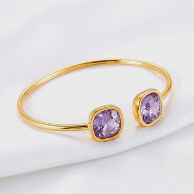 Nature is random; engineering is precise. Mined amethysts often vary in clarity and saturation. This cuff bracelet features precision-cut Simulated Amethyst, color-calibrated to the absolute ideal violet benchmark. We use A5 Grade material to ensure maximum light return and a flawless visual profile.