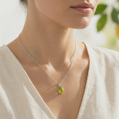 Nature rarely delivers the perfect shade of peridot. Most mined stones are either too pale, cloudy, or heavily included. We engineered this 1.5CT pear-cut Moissanite to hit the absolute color calibration of the coveted "Evening Emerald" green. With a refractive index of 2.65, this necklace offers more fire than a diamond and superior clarity to any museum-grade gem.