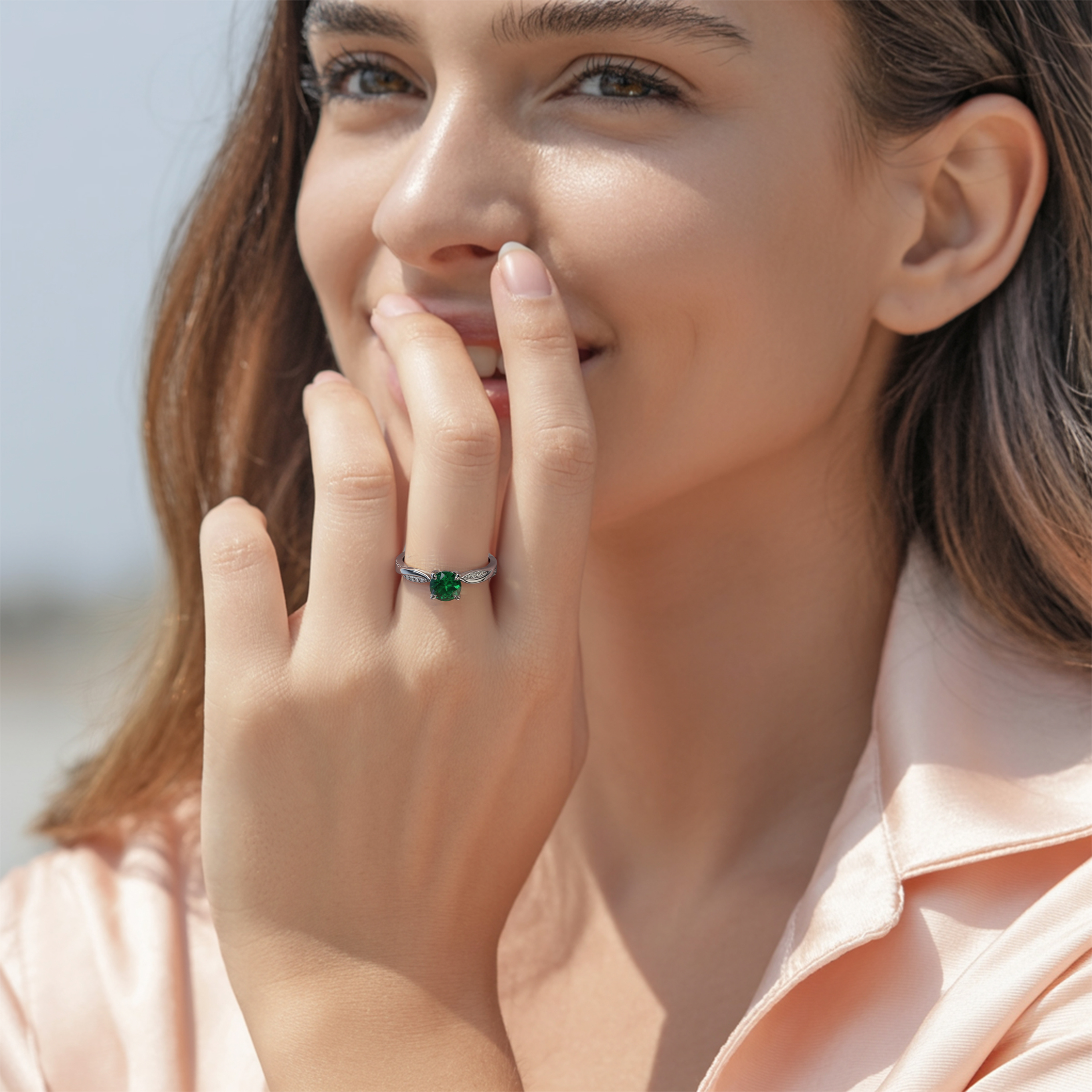 Diamond Brilliance. Modern Twist. Smart Price. This isn't your typical solitaire. Our twisted band design takes the classic 1CT round moissanite and infuses it with captivating green, giving it an exotic edge—literally. The result? A ring that catches light from every angle, radiating the verdant charm of nature's luxury.