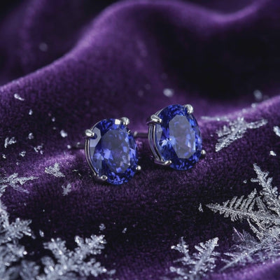 Mined tanzanite is rarely found with this level of clarity and deep saturation. These stud earrings feature Simulated Tanzanite, engineered to capture the rare deep blue-violet tanzanite with trichroic shifting hues of the world's most coveted specimens. Precision-cut from A5 Grade material for maximum light return, they deliver museum-grade brilliance without the scarcity markup or inconsistent quality of earth-mined stones.