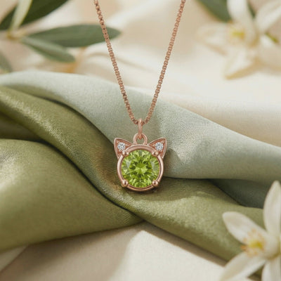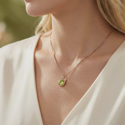 Crafted in 18K Rose Gold Vermeil over solid S925 Sterling Silver, the warm metal tones perfectly complement the verdant olive hues of the stone. Whether worn as a personal talisman of renewal or gifted as the ultimate August birthstone gesture, this necklace is a timeless celebration of nature's beauty.