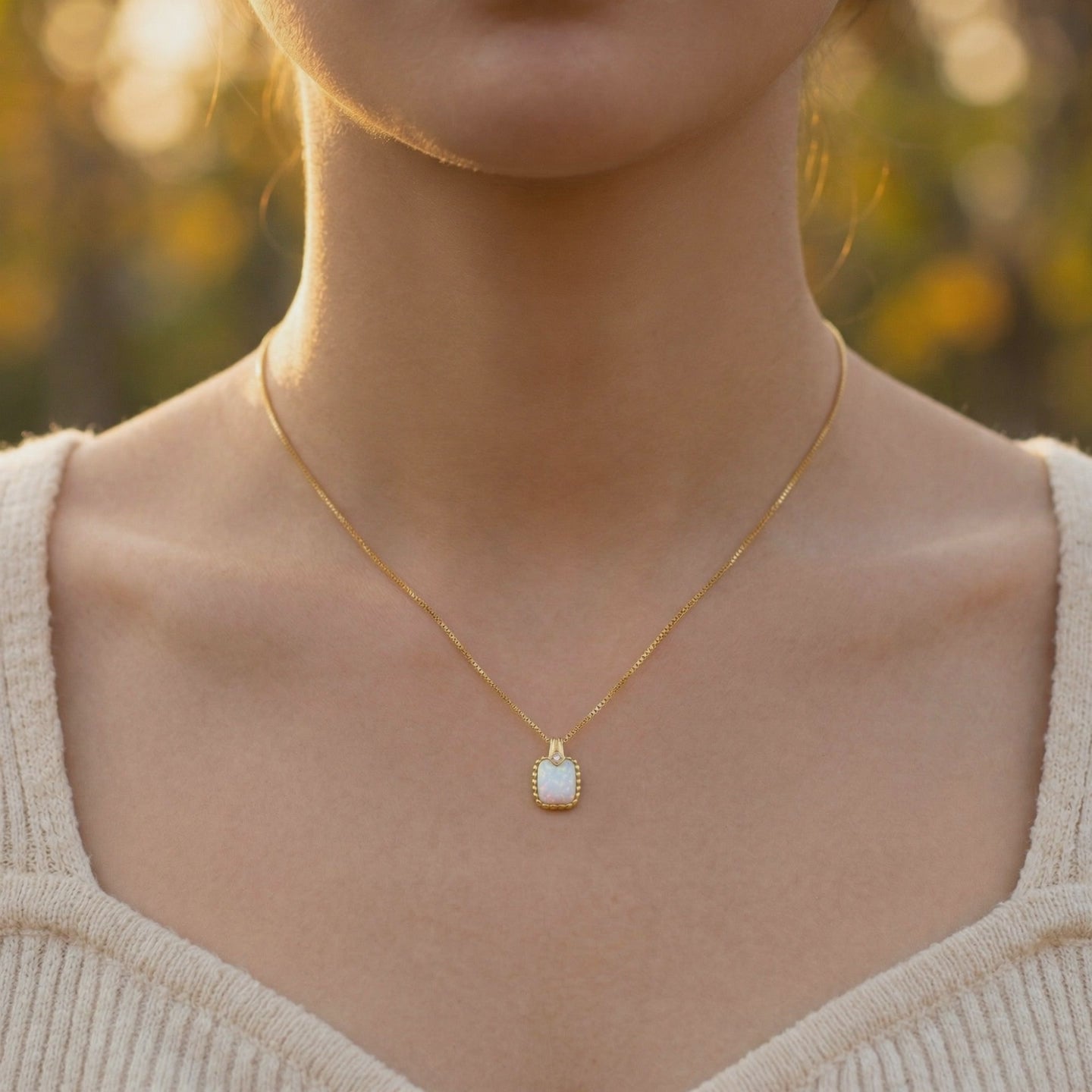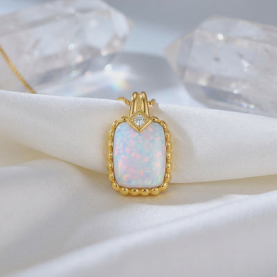 Watch the play-of-color dance across your neckline with your every movement. This dainty cushion pendant necklace is expertly crafted in premium S925 sterling silver with a radiant gold-tone finish. At its heart lies a 100-million-year-old natural opal, offering a mesmerizing inner fire that guarantees your specific stone is a completely unique geological fingerprint—no one else on Earth has one exactly like it.
