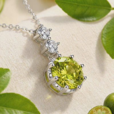 - Stone: A5 Grade Round Cut Simulated Peridot (Color-Calibrated Zirconia).