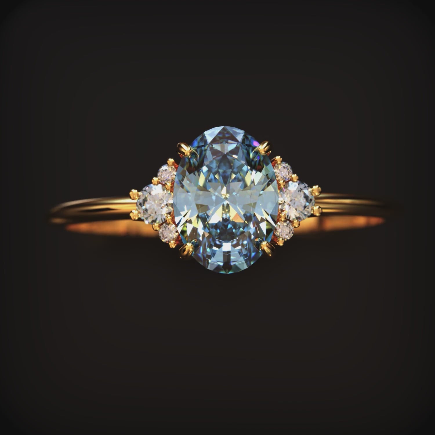 The Olivia Jane 2CT Oval Cut Blue Moissanite Ring