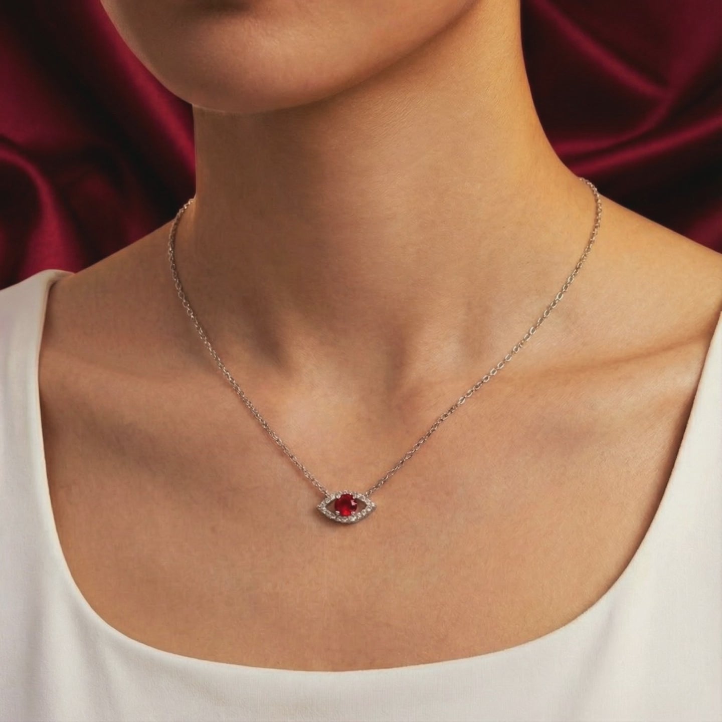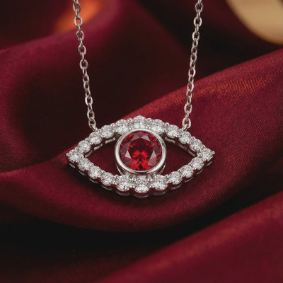 This pendant features a protective eye motif, precision-set with a center stone that exceeds diamond in visual physics. Crafted in Solid 925 Sterling Silver and finished with a thick layer of Rhodium for armor-like tarnish resistance, this piece is built for daily wear, not just special occasions. It handles hand sanitizer, sweat, and the grind of real life without losing its brilliance.