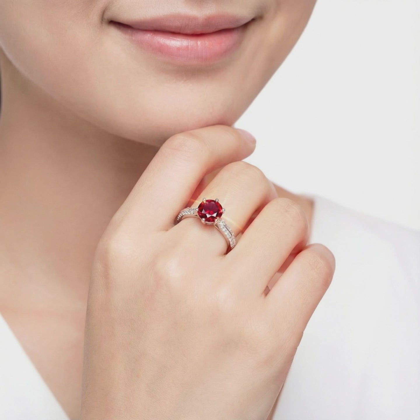 Mined rubies are frequently cloudy and carry intense markups for even basic quality. This simulated ruby ring is engineered to meet the coveted Pigeon Blood red benchmark—the absolute ideal for July birthstones. Precision-cut from A5 Grade material, this stone delivers flawless VVS clarity and a deep, intense fire that nature rarely produces with such consistency.