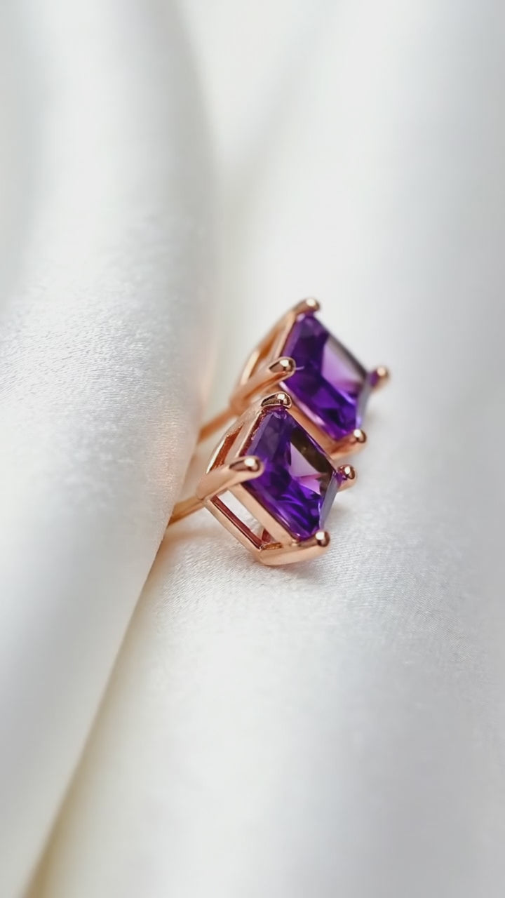 - Stone: 5x5mm Square Cut Simulated Amethyst (A5 Grade)