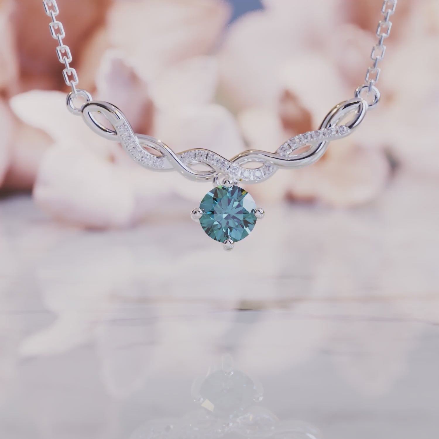 The Jennifer Alexandrite Necklace features a beautiful 0.8CT round-cut lab-grown Alexandrite, offering a remarkable color-shifting effect. The high-quality, internally flawless gemstone is elegantly suspended from a delicate chain, complemented by sparkling lab-grown diamond simulants along the design.