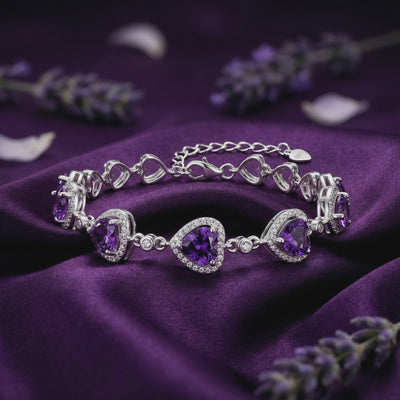 Wrap your wrist in the romantic allure of the Liliana Heart Bracelet, a stunning testament to affection and artistry. Seven precision-cut Heart Amethysts, each measuring a substantial 10mm, are set along a delicate yet durable chain, creating a rhythmic display of deep, saturated violet light. This bracelet captures the essence of the February birthstone in its most lovable form, offering a constant reminder of clarity and connection.